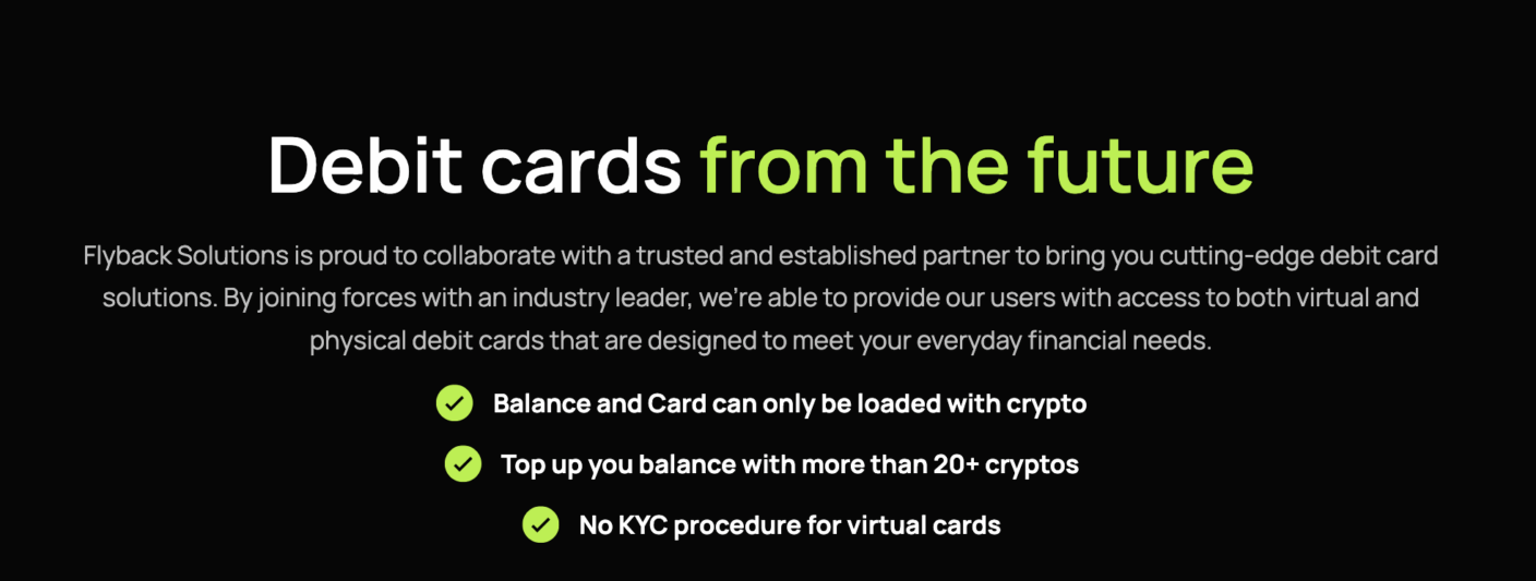 Die Lösungen von Flyback bieten innovative Wege zu mehr finanzieller Freiheit und Unabhängigkeit – unter anderem durch KYC-freie Kreditkarten und weitere Dienstleistungen, die den Umgang mit Geld flexibler und sicherer machen. Ziel ist es, Menschen Alternativen zu klassischen Bankstrukturen zu eröffnen und ihnen mehr Handlungsspielraum zu geben.